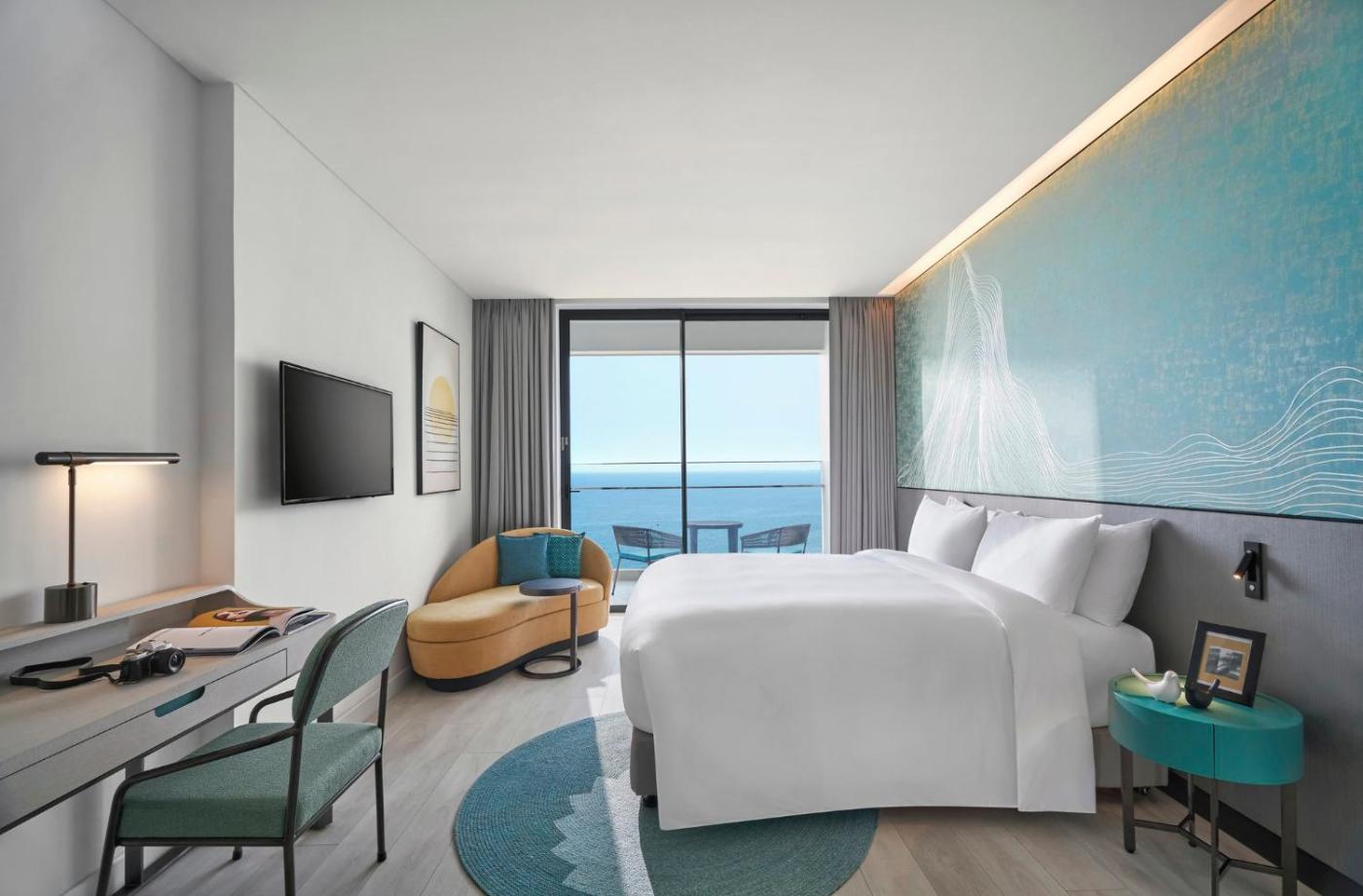 Deluxe King Room with Sea View and Balcony - High Floor. The spacious double room features air conditioning, soundproof walls, a balcony with sea views as well as a private bathroom boasting a walk-in shower. The unit has 1 bed.