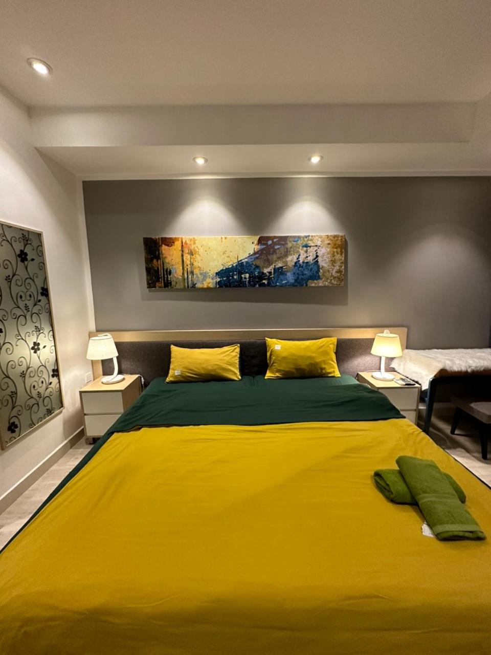 Three-Bedroom Apartment. This spacious apartment features 1 bedroom, a kitchen and 2 bathrooms with a shower and a bidet. The well-fitted kitchen has a stovetop, a refrigerator, kitchenware and a microwave. The air-conditioned apartment features a flat-screen TV, a washing machine, a dining area, a wardrobe as well as city views. The unit has 1 bed. ;
